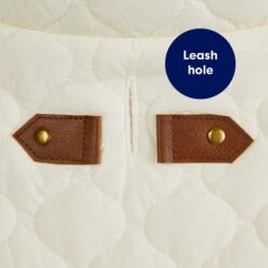 - Faux fur trim at the collar and faux leather accents around the leash hole add detailed style to this lively look.