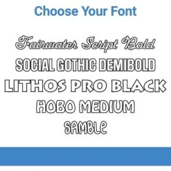 - Personalizable design allows you to add a single line of text up to 13 characters long in one of five fonts.